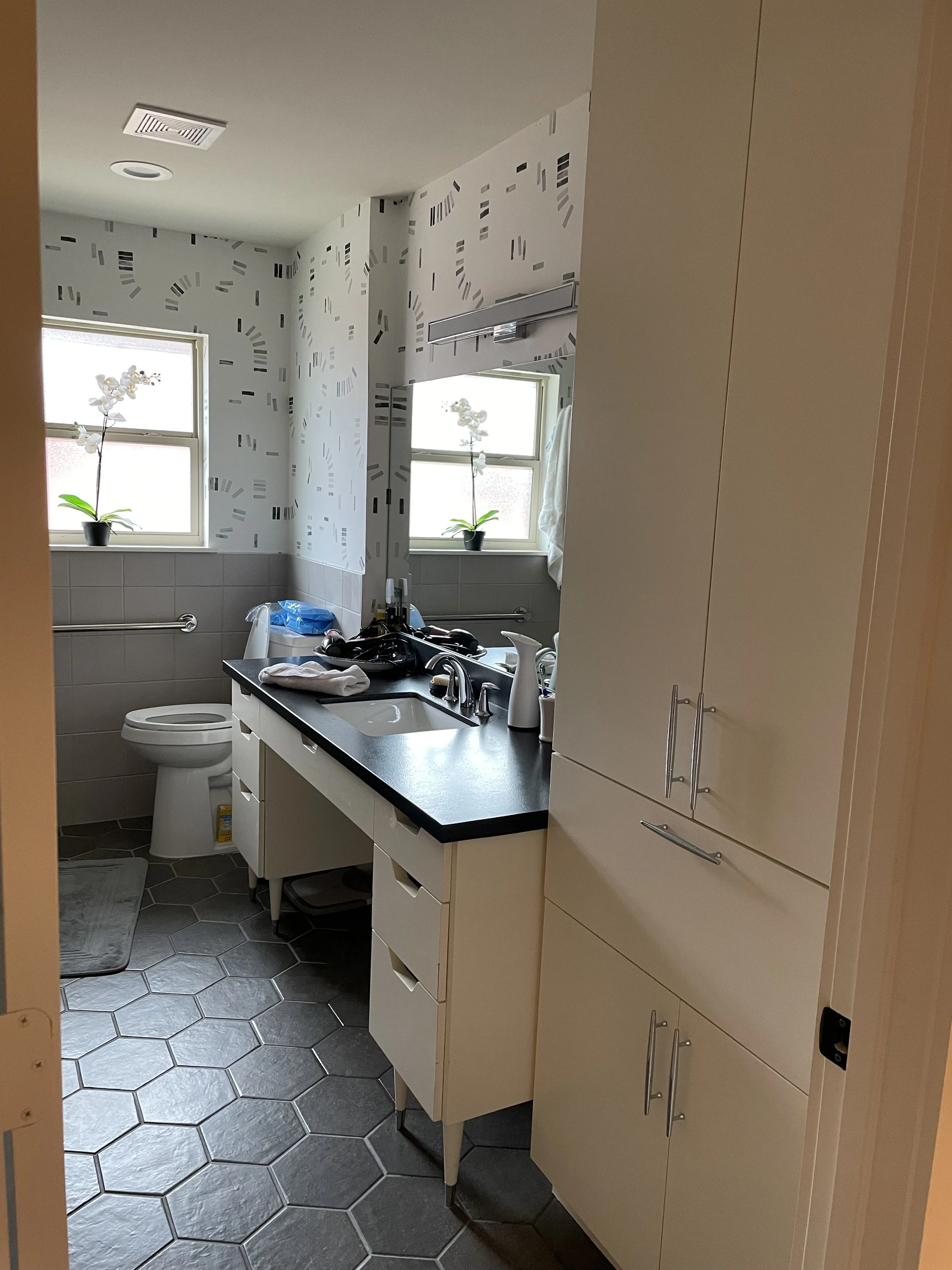 From our initial visit, we realized that we needed to create more hallway space to allow for 360 degree turns in addition to remodeling their primary bathroom (existing bedroom #1).